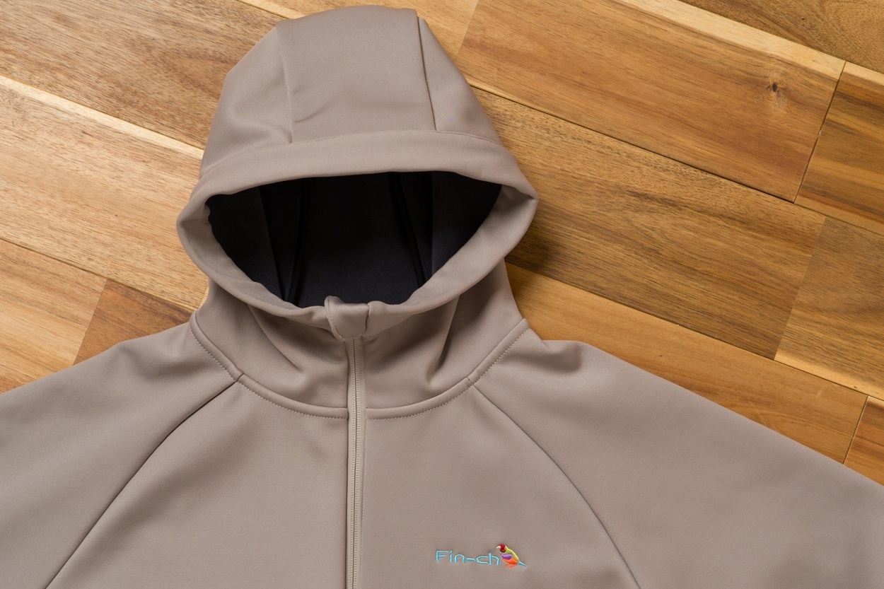 この難題をクリアするために行き着いたのがネオプレーンのような伸縮性の高い生地と、保温性の高いマイクロフリースという2種類の生地をボンディングで貼り合わせて使用すること。